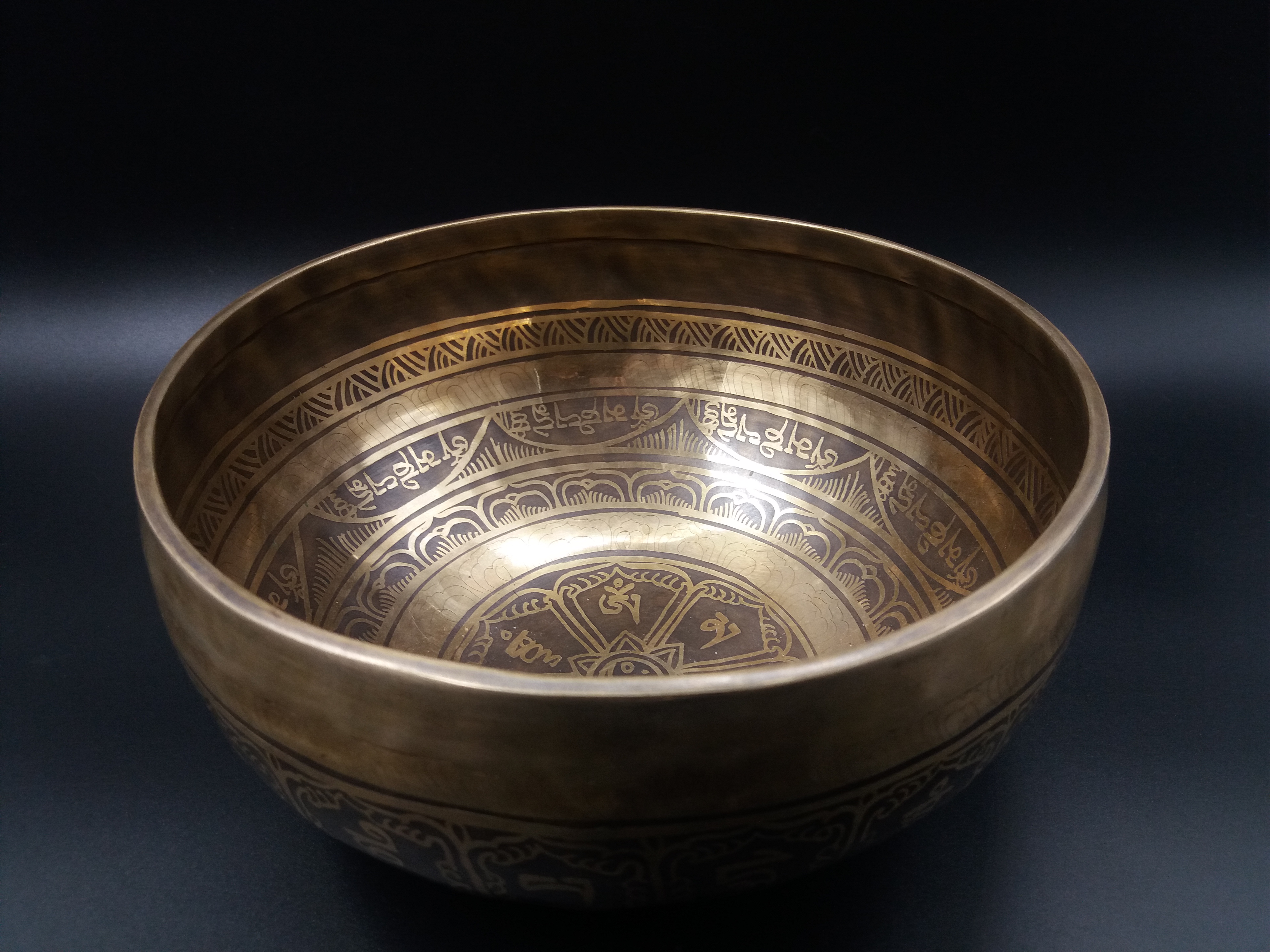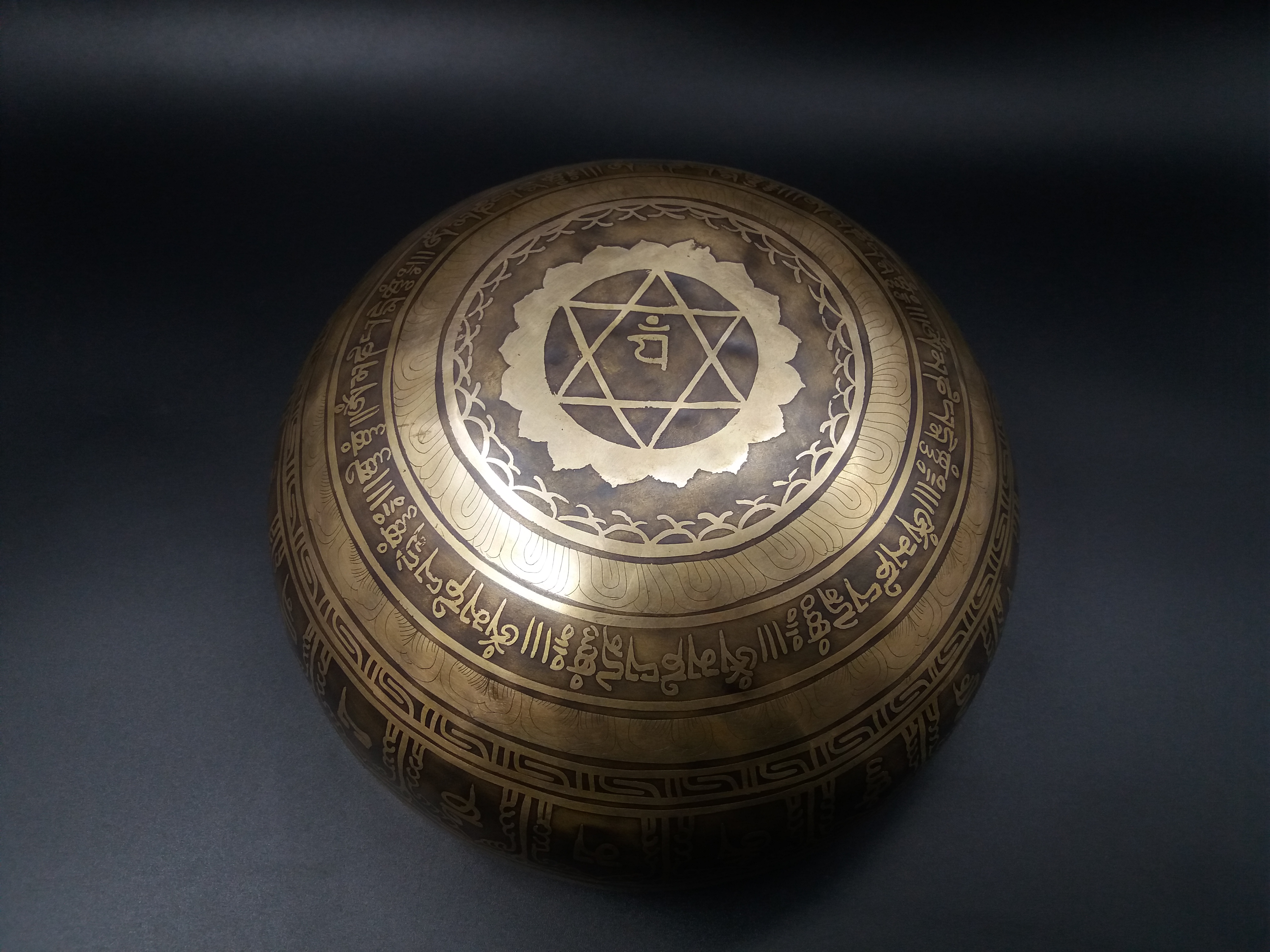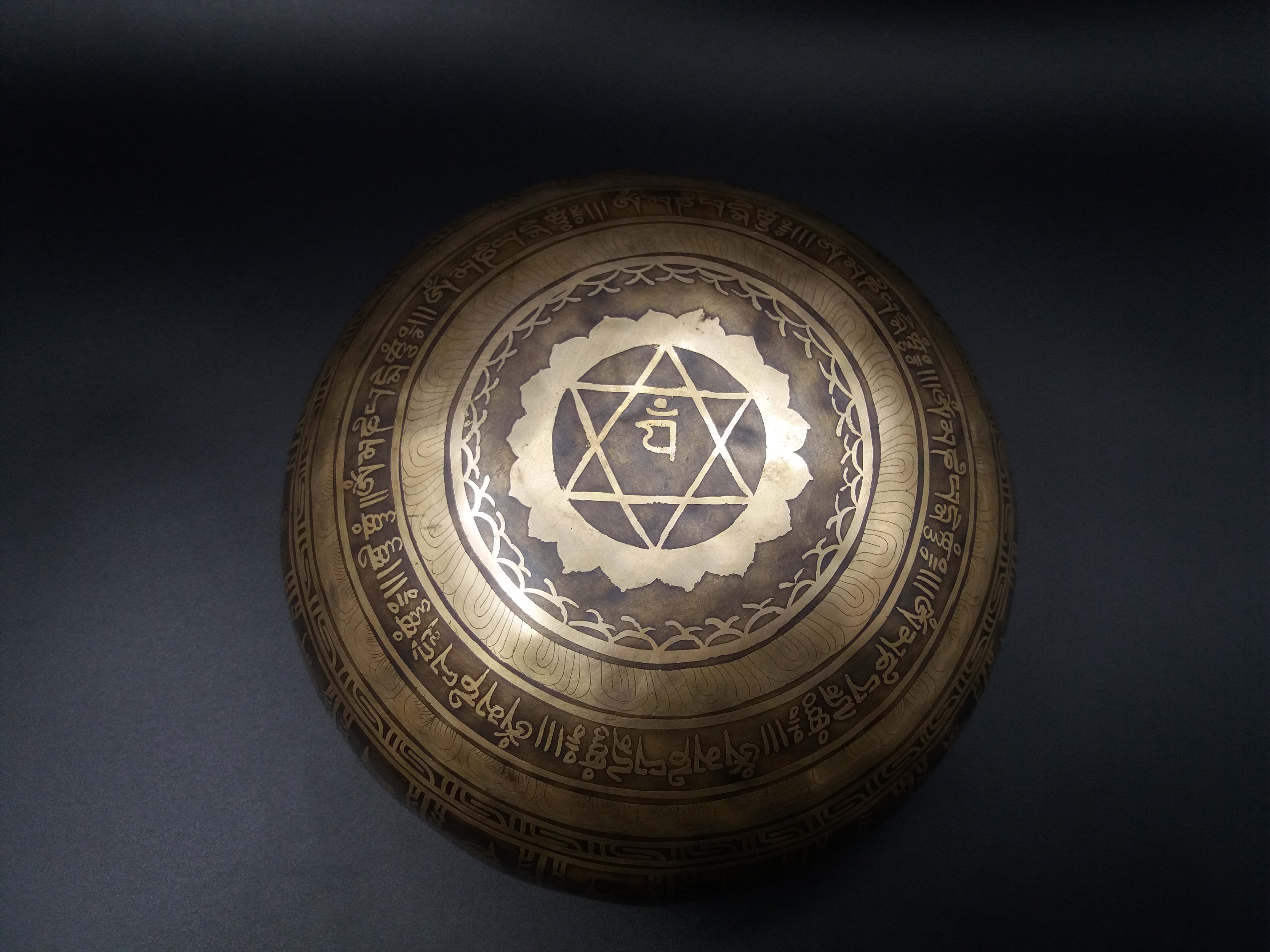 The fundamental note resonates with the Heart Chakra. The vibration of this bowl connects all other chakras. It brings balance and creates calmness.